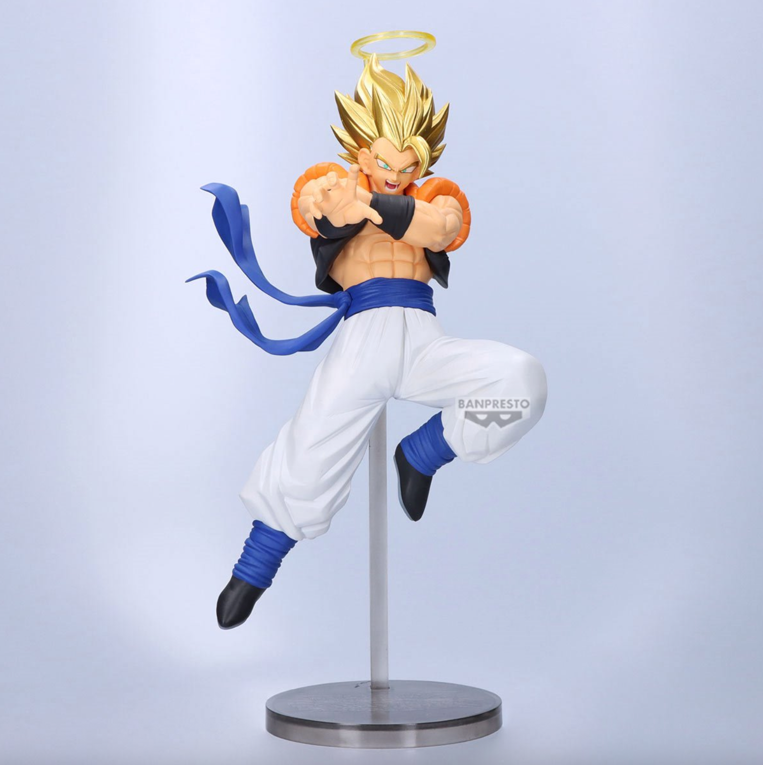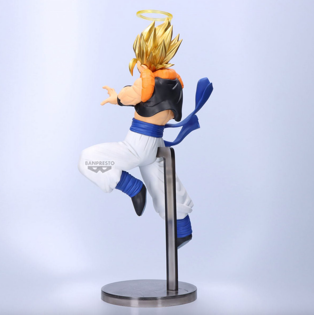 This meticulously crafted figure brings together the power of Gogeta, showcasing the fusion of Goku and Vegeta in stunning detail. Standing tall with dynamic sculpting and vibrant colors, this statue captures the intensity and strength of one of the most iconic moments in the Dragon Ball Z universe. Made of PVC, this figure measures 7 1/2-inches tall.