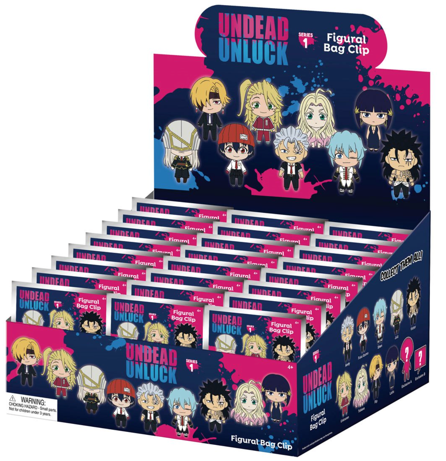 All your favorite Undead Unluck characters are here for you to collect in 3D foam! Keep an eye out for the special rare chase figures! Each figure measures approximately 2-inches tall. Collect all your favorites like Andy, Shen Xiang, Victor, and more!