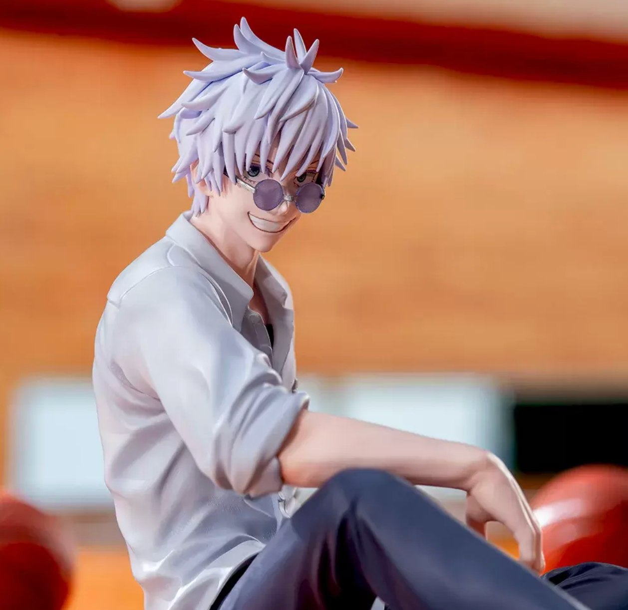 The "Yumemirize" series, which expresses dreamy and longed-for scenes, launches "Yumemirize Satoru Gojo". Inspired by a youthful school setting – a basketball court – it depicts Gojo during his Jujutsu High days, wearing his school uniform and round sunglasses with light-colored lenses. His sleeves are casually rolled up, and a relaxed sitting pose showcases Gojo's easygoing personality~ A super cheerful big smile adorns his face, exuding Gojo's full charm!