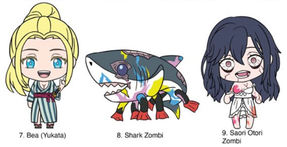 All your favorite Zom 100: Bucket List of the Dead characters are here for you to collect in 3D foam! Keep an eye out for the special rare chase figures! Each figure measures approximately 2-inches tall. Collect all your favorites like Akira Tendo, Beatrix, Shark Zombi, and more!